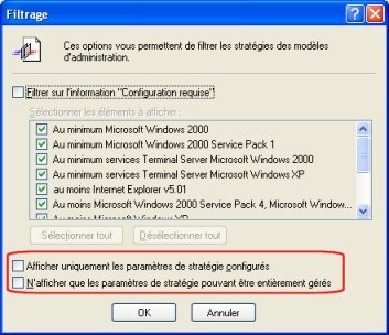 - Afficher uniquement les paramètres de stratégies configurés
