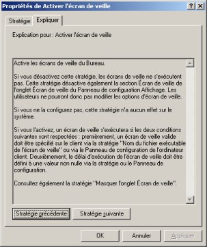 Un double-clic sur l'une des stratégies provoque l'ouverture d'une boite