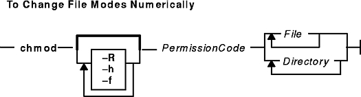 chmod [ -R ] [ -h ] [ -f ] PermissionCode { File ... | Directory ... }