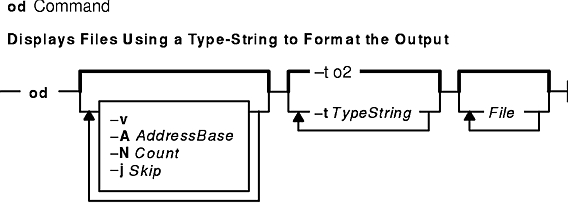 The od command displays the file specified by the File parameter in the format specified. If the File parameter is not given, the od command reads standard input.